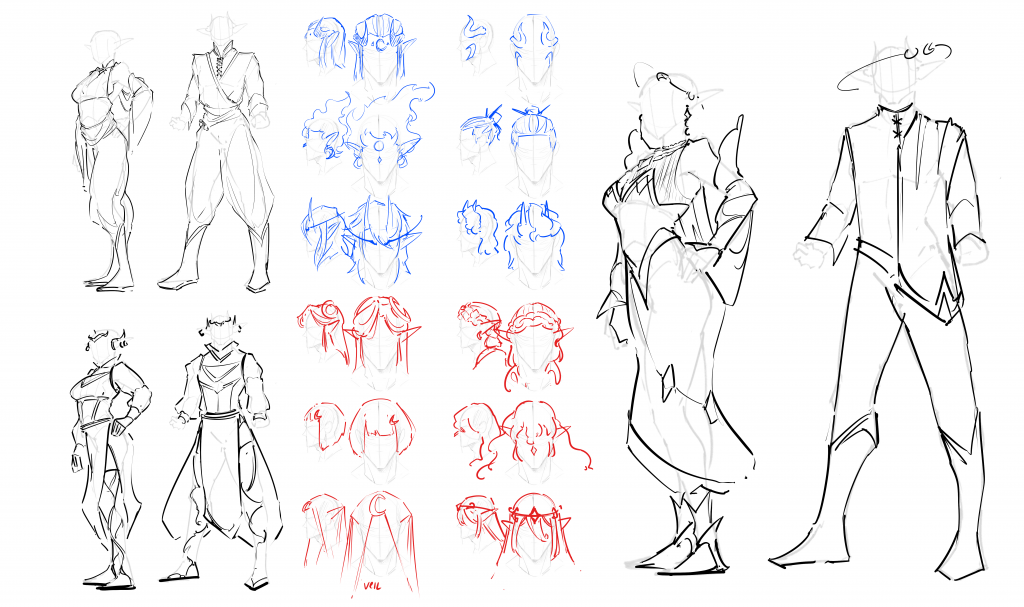 last week Achi completed some visual development for Lumiron citizens and their general style of clothing as well as hair style. They took inspiration from elven and tiefling style aesthetics in their design.
